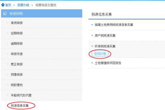 (1)我要辦稅à稅費(fèi)申報(bào)及繳納à稅源信息采集à環(huán)保稅稅源采集
