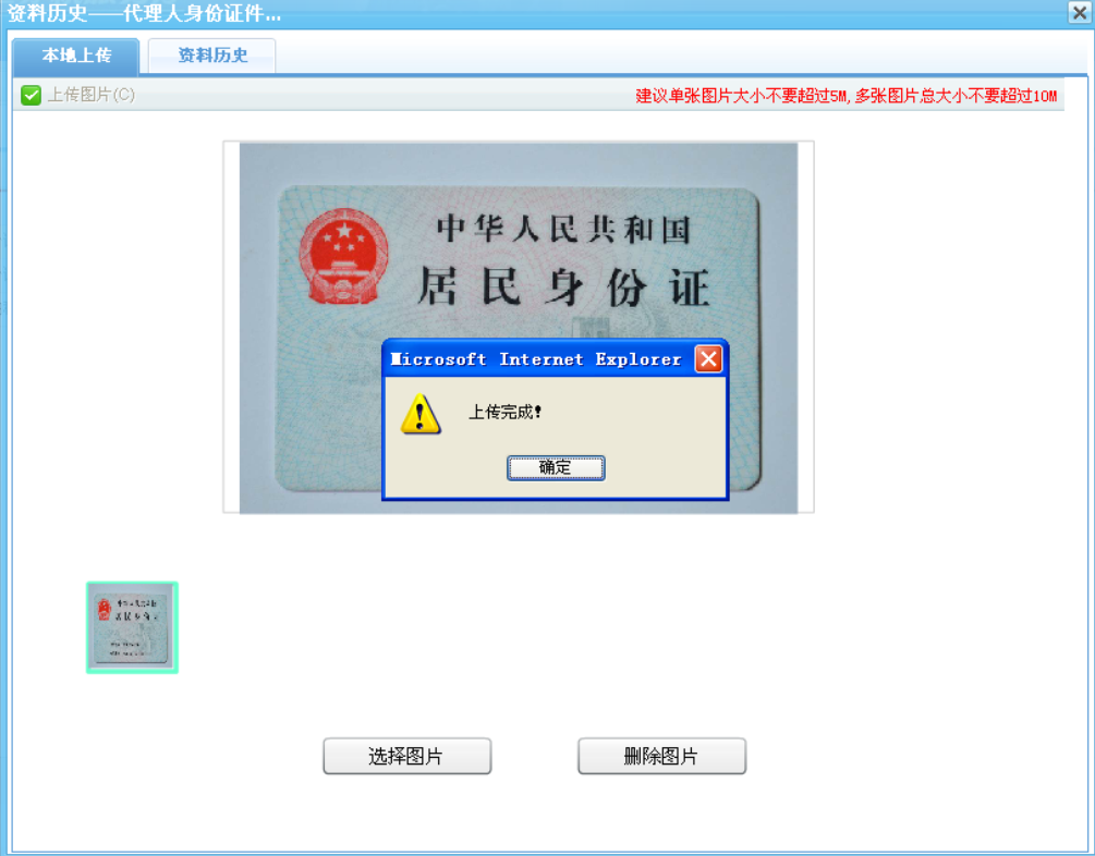 待頁(yè)面提示“上傳完成”后,點(diǎn)擊【確定】,即完成資料采集。