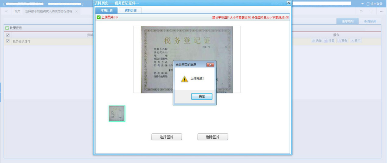 待頁面提示“上傳完成!”后,點擊【確定】,即完成資料采集。