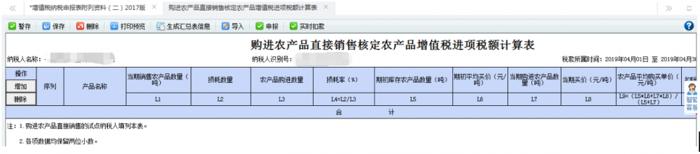 (11)主附表樹打開《購進農產(chǎn)品直接銷售核定農產(chǎn)品增值稅進項稅額計算表》,點擊“增加”即可填寫。