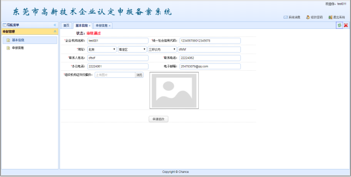 在審核通過后,如需再次修改信息,需修改后點(diǎn)擊“申請修改”按鈕。