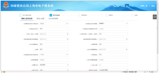 納稅人基本信息填寫: