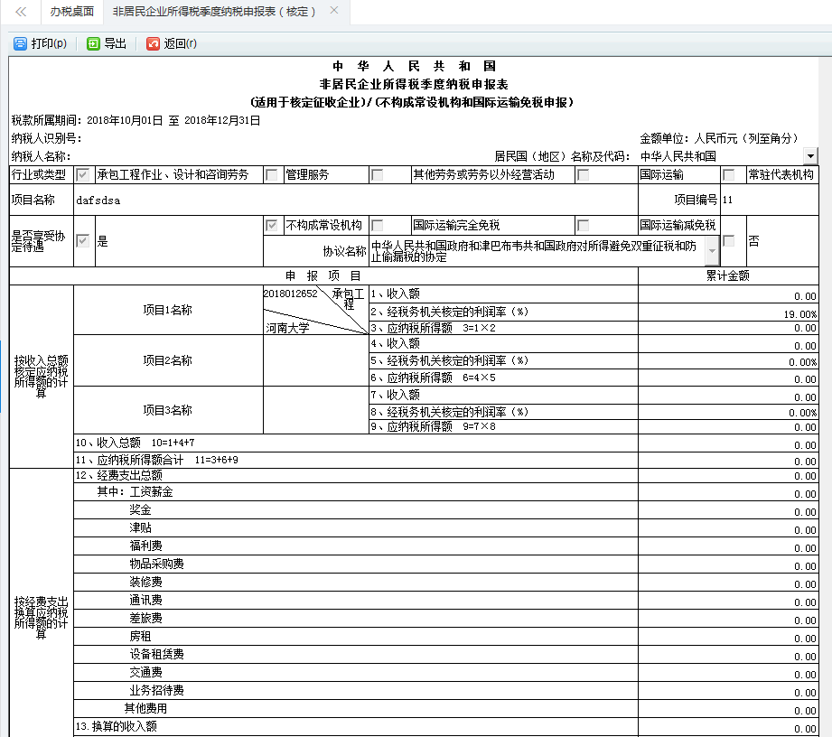 1.打開(kāi)【非居民企業(yè)所得稅季度納稅申報(bào)表】,填寫(xiě)表單: