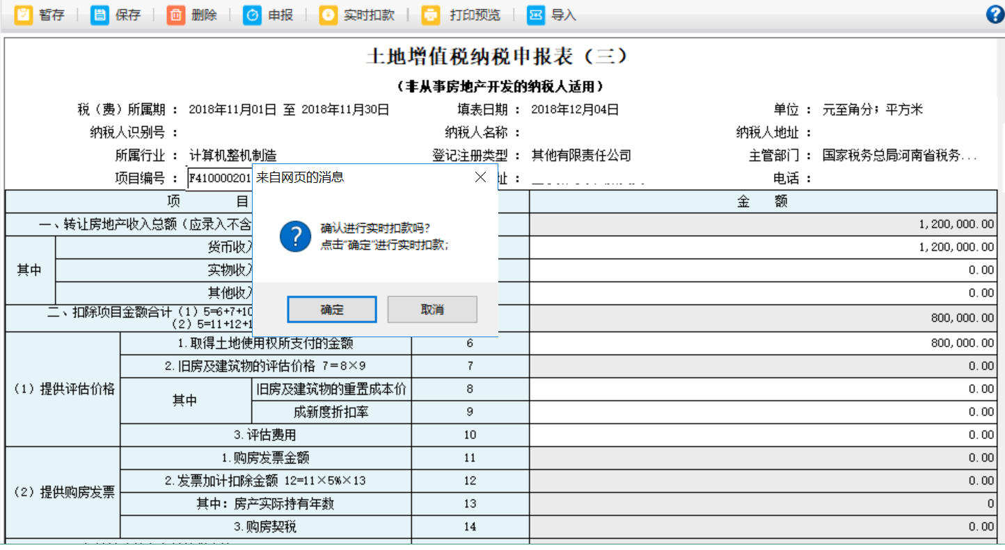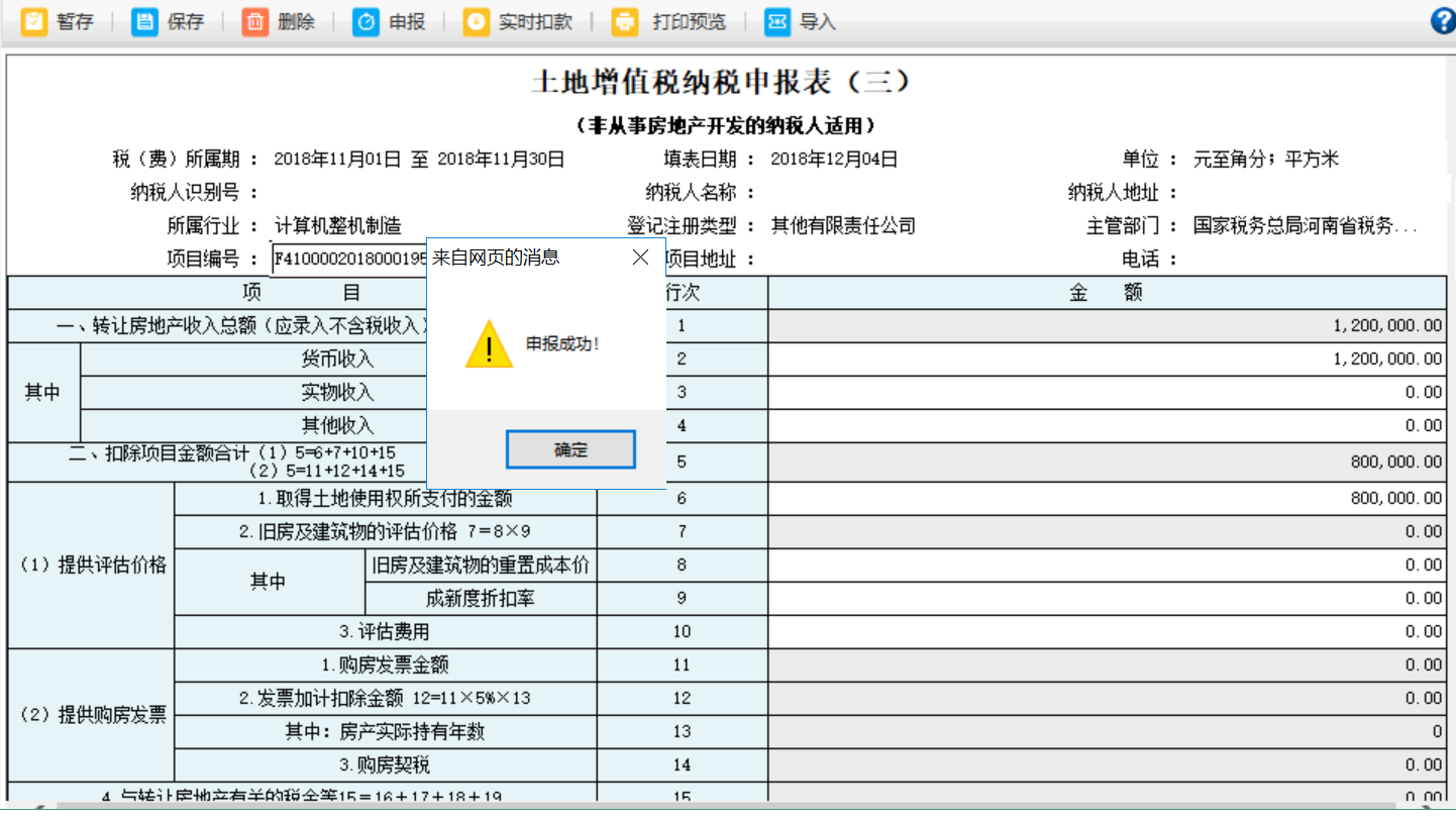 5.土地增值稅預(yù)征申報是按照項目申報,選擇不同的項目編號,申報不同的項目;