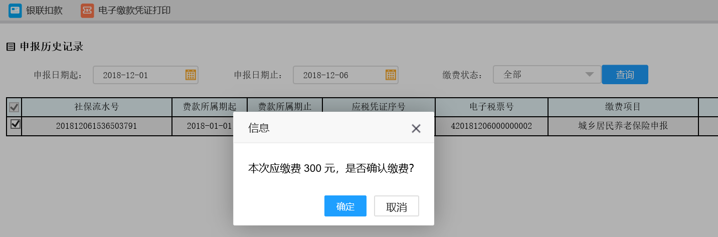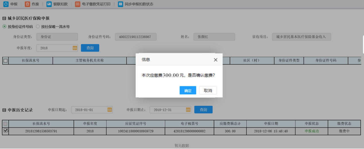 6.申報后,可點擊【實時扣款】按鈕,待頁面彈出提示框提示“確定進(jìn)行實時扣款嗎?點擊“確定”進(jìn)行扣款”,點擊【確定】按鈕,即進(jìn)行扣款: