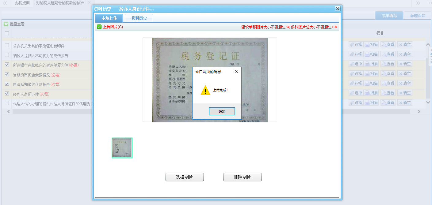 待頁(yè)面提示“上傳完成”后,點(diǎn)擊【確定】,即完成資料采集: