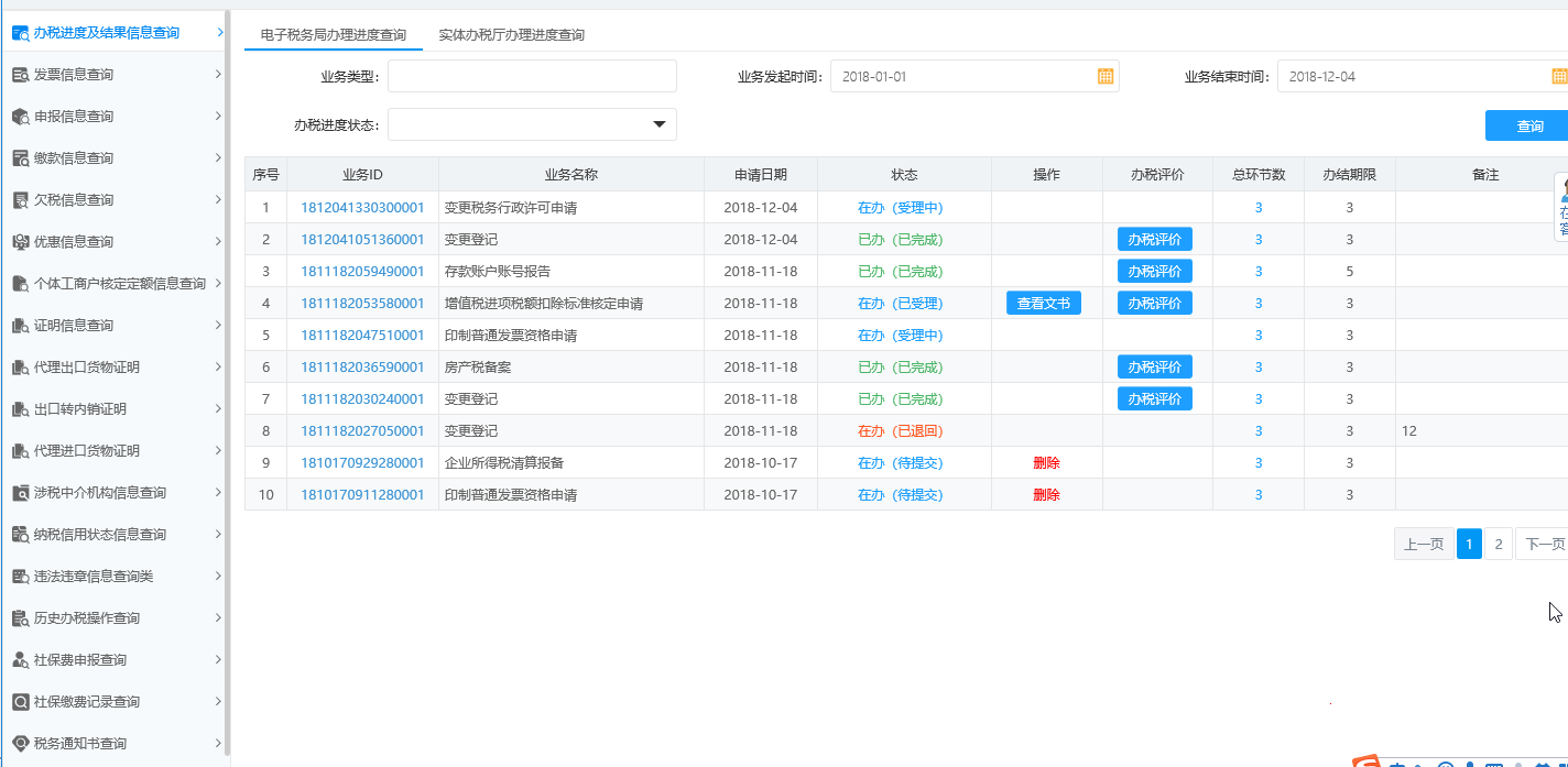 1.辦稅進(jìn)度及結(jié)果信息查詢