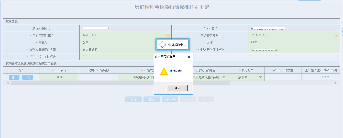 2.點(diǎn)擊【保存】按鈕,待頁(yè)面彈出提示框提示“保存成功!”,點(diǎn)擊【確定】按鈕,表單填寫的內(nèi)容被保存: