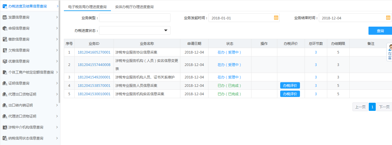 1.辦稅進(jìn)度及結(jié)果信息查詢