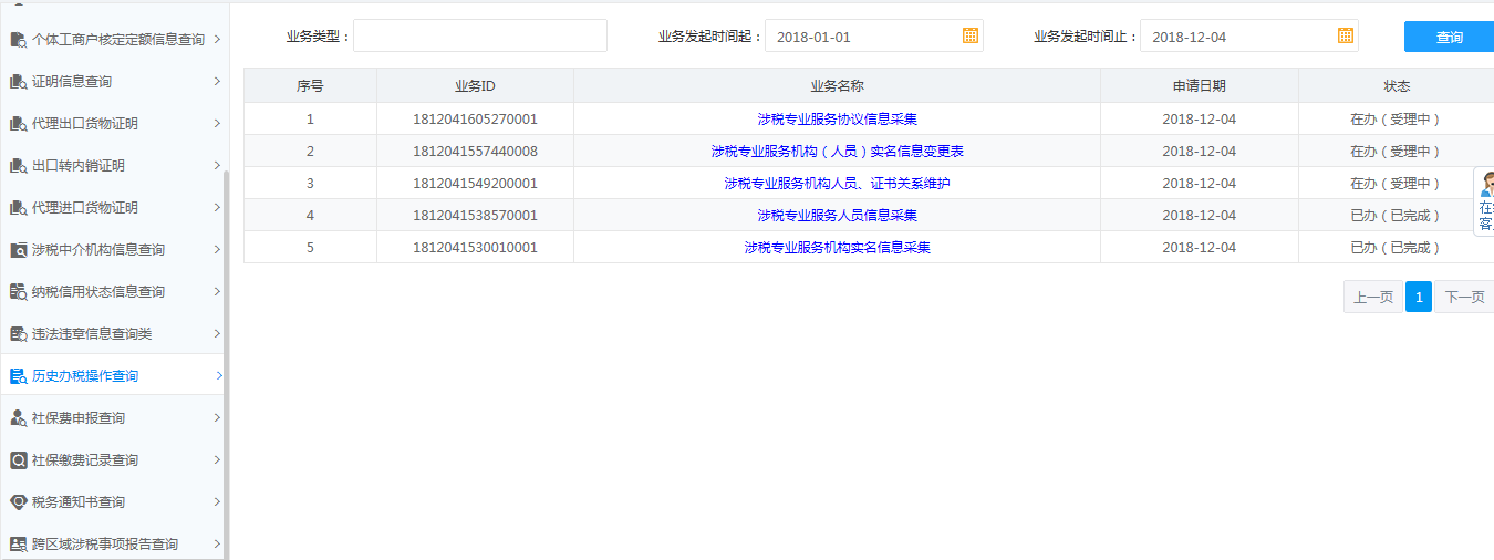 模塊路徑:首頁(yè)-【我要查詢】-【歷史辦稅操作查詢】