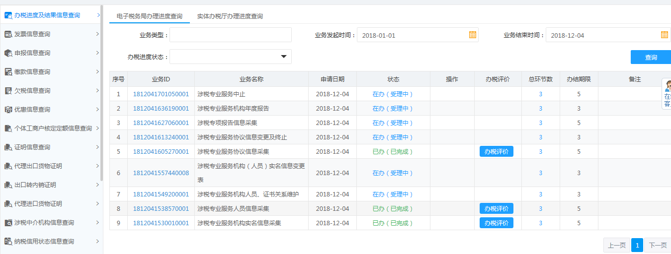1.辦稅進度及結(jié)果信息查詢
