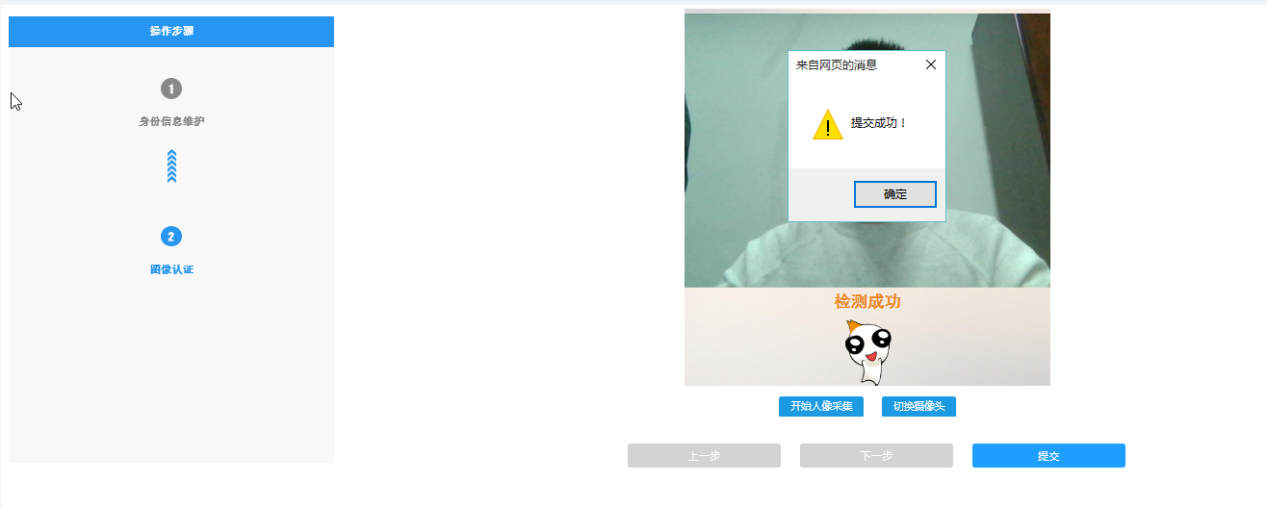 5.比對(duì)成功后,點(diǎn)擊【提交】按鈕,如下: