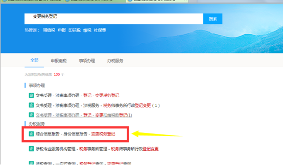 例如,輸入框輸入社保費(fèi)點(diǎn)擊搜索可查詢(xún)出“變更稅務(wù)登記”的菜單路徑。