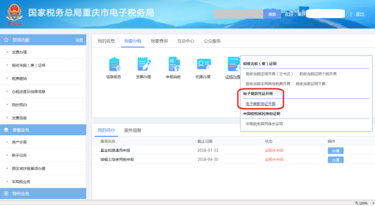 操作流程:登陸重慶市電子稅務(wù)局-我要辦稅-證明辦理-電子繳款憑證開具
