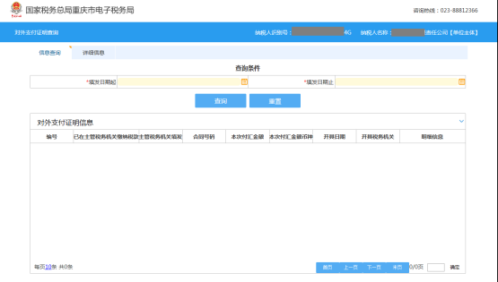 依次進(jìn)入【我要查詢】-【證明信息查詢】-【對外支付證明查詢】;