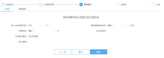 操作流程:登陸重慶市電子稅務(wù)局-我要辦稅-涉稅專業(yè)服務(wù)-稅務(wù)師事務(wù)所行政登記終止