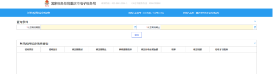 第三步:打開功能菜單后,系統(tǒng)將自動帶出該納稅主體的其他稅種核定信息,錄入認(rèn)定有效期起止可查詢該時段是其他稅種核定信息。