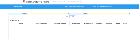 第三步:打開功能菜單后,系統(tǒng)將自動帶出該納稅主體的票種核定信息,錄入認(rèn)定有效期起止可查詢該時段是票種核定信息。