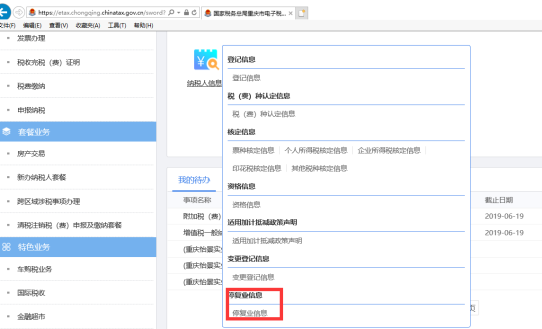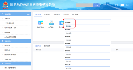 操作流程:登陸重慶市電子稅務(wù)局- 我的信息-電子資料