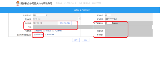 錄入用戶信息,點(diǎn)擊“保存”提示保存成功(下圖中標(biāo)記的為可修改內(nèi)容)。
