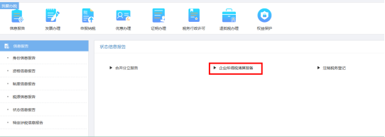 一、納稅人以企業(yè)身份登錄重慶市電子稅務(wù)局點擊【我要辦稅】 - 【信息報告】 - 【狀態(tài)信息報告】-【企業(yè)所得稅清算報備】進入功能模塊。