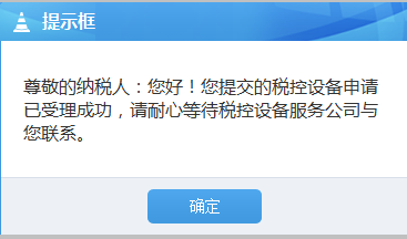 第二步:稅控設(shè)備通知提示信息,點(diǎn)擊接受,彈出受理成功的提示框