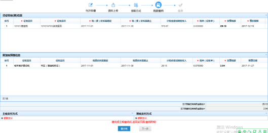 (一)選擇郵寄發(fā)票后,系統(tǒng)提示郵寄協(xié)議書,點(diǎn)擊“接受”,然后選擇郵寄地址,點(diǎn)擊下一步已進(jìn)入稅款繳納頁(yè)面。