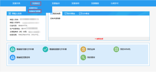一、納稅人登錄后,切換為企業(yè)主體身份,點(diǎn)擊【發(fā)票辦理】-【發(fā)票核定】-【專票最高開票限額】。