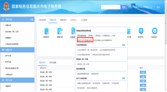 第二步:點擊原油天然氣增值稅申報打開申報界面