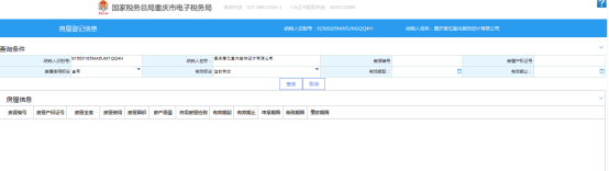 第三步:打開該功能菜單后,系統(tǒng)會自動帶入納稅人基本信息,錄入其他查詢信息,點(diǎn)擊查詢,系統(tǒng)將會顯示房屋明細(xì)。