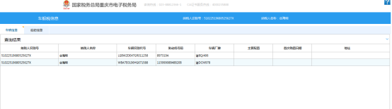第三步:打開該功能菜單后,系統(tǒng)會自動帶入納稅人基本信息,錄入其他查詢信息,點(diǎn)擊查詢,系統(tǒng)將會顯示車輛明細(xì)。
