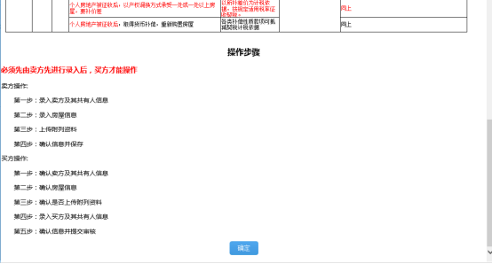 3.點擊“接受”按鈕后,系統(tǒng)彈出個人住房買賣相關(guān)政策說明及操作步驟簡要說明,點擊“確定”后開始填寫信息;