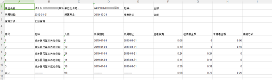 查詢單位名下掛靠的所有城鄉(xiāng)居民保險參保人應征數(shù)據(jù)和清繳情況。