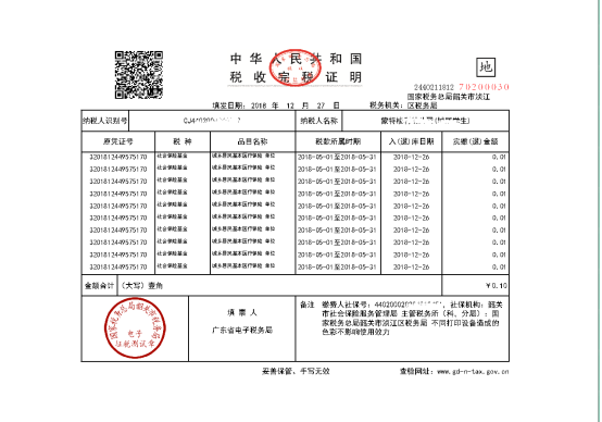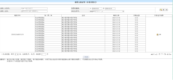 繳費人查詢已繳費信息打印城鄉(xiāng)居民保險表格式電子稅票。