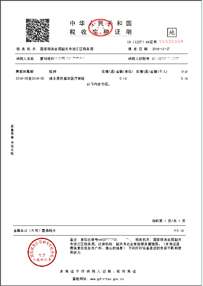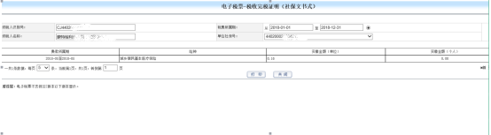 繳費人查詢已繳費信息打印城鄉(xiāng)居民保險文書式電子稅票。