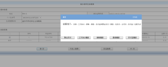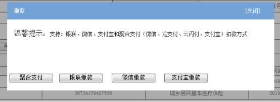 3、勾選應(yīng)征信息,點(diǎn)擊【繳費(fèi)】按鈕, 彈出繳款方式界面。繳費(fèi)人選擇繳款方式后進(jìn)行繳費(fèi)。