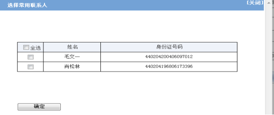 4、代繳成功會(huì)把被代繳人信息保存到常用聯(lián)系人。可以點(diǎn)擊【常用聯(lián)系人】按鈕,選擇常用聯(lián)系人獲取未清繳的應(yīng)征信息,然后勾選應(yīng)征信息進(jìn)行繳款。