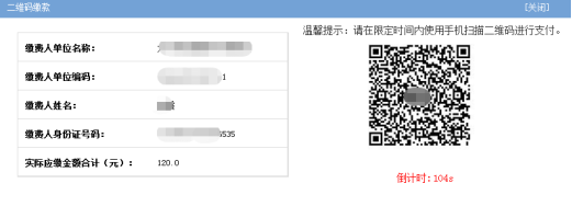 3、選擇支付方式 如:勾選“微信繳款”,生成繳款二維碼,使用微信掃一掃功能,進(jìn)行掃碼支付。