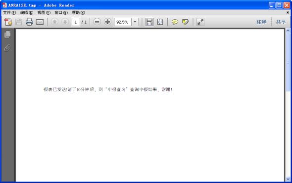 (4)提交成功后會(huì)出現(xiàn)以下提示,至此網(wǎng)上申報(bào)數(shù)據(jù)提交工作已完成,然后可到查詢頁(yè)面查詢申報(bào)處理結(jié)果。