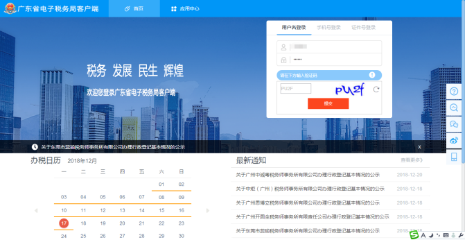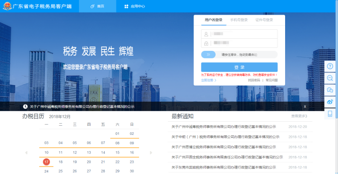 從右上角“登錄”按鈕進(jìn)行登錄或首頁左菜單“前住:廣東省電子稅務(wù)局網(wǎng)站”,進(jìn)入登錄界面,輸入廣東省電子稅務(wù)局登錄賬號密碼,即可登錄廣東省電子稅務(wù)局客戶端。
