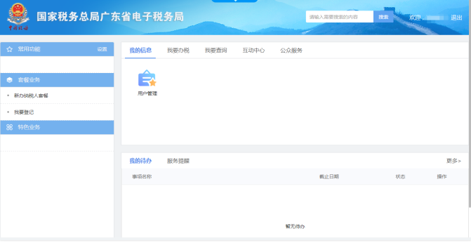 若為個(gè)人身份進(jìn)入,會直接進(jìn)入廣東省電子稅務(wù)局辦稅桌面,如圖:
