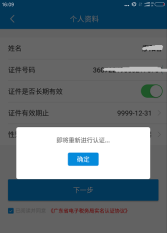 根據(jù)系統(tǒng)提示做相關(guān)動作完成活體驗證流程。當(dāng)跳轉(zhuǎn)到支付寶進行活體身份信息校驗提示認證失敗原因為“您提供的身份信息與當(dāng)前登錄賬號實名信息不一致,請確認后重新提交”時,廣東稅務(wù)APP出現(xiàn)下圖提示,點擊“確定”按鈕,即可重新進行實名信息核驗。