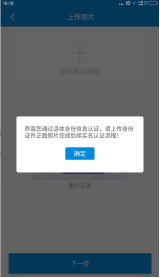 照片上傳完成后,點擊【下一步】進入手機驗證碼校驗過程,輸入手機號碼,點擊【發(fā)送驗證碼】,將手機短信收到的驗證碼輸入界面驗證碼輸入框,點擊【下一步】按鈕完成實名認證。
