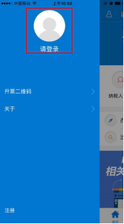 下載完成廣東稅務(wù)APP打開后,顯示主頁面,點擊左上角小圖像,點擊“請登錄”,彈出登錄頁面,輸入申請人用戶名和密碼進行登錄。