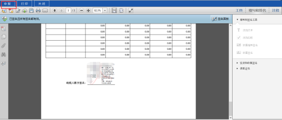 1.    點(diǎn)擊【申報(bào)】按鈕生成PDF報(bào)表,CA用戶(hù)需要點(diǎn)擊簽章進(jìn)行簽名,繼續(xù)點(diǎn)擊【申報(bào)】按鈕完成申報(bào),進(jìn)入回執(zhí)單頁(yè)面。
