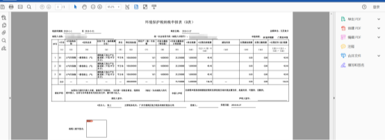 納稅人填寫完環(huán)境保護(hù)稅納稅申報表(B類)后,在主表核對各應(yīng)稅污染物的稅額計算是否正確,如無誤,點擊頁面右上角的【下一步】按鈕,進(jìn)入PDF簽名確認(rèn)頁面,如下圖所示。