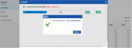 7.點(diǎn)擊【上傳文件】,可以通過(guò)導(dǎo)入模板數(shù)據(jù)來(lái)報(bào)送財(cái)務(wù)報(bào)表。