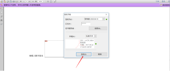 8、將申報表拉到最底下,點擊【納稅人簽名】下劃線上的空白處,彈出【簽名】頁面。