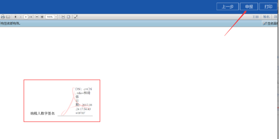 11、納稅人核定數(shù)據(jù)無誤后,點擊【申報】按鈕進行申報,CA用戶簽名后點擊【申報】。