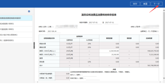 3、進(jìn)入到申報(bào)表填寫(xiě)界面,可以看到在頁(yè)面右邊會(huì)顯示一個(gè)主附表的導(dǎo)航欄,可以點(diǎn)擊鏈接在主表和各個(gè)附表之間進(jìn)行切換,頁(yè)面右上角有【保存】,【重置】,【下一步】,點(diǎn)擊【保存】可保存申請(qǐng)表中所填數(shù)據(jù),點(diǎn)擊【重置】覆蓋會(huì)申報(bào)表中已填寫(xiě)的相關(guān)數(shù)值,并重新生成申報(bào)表。